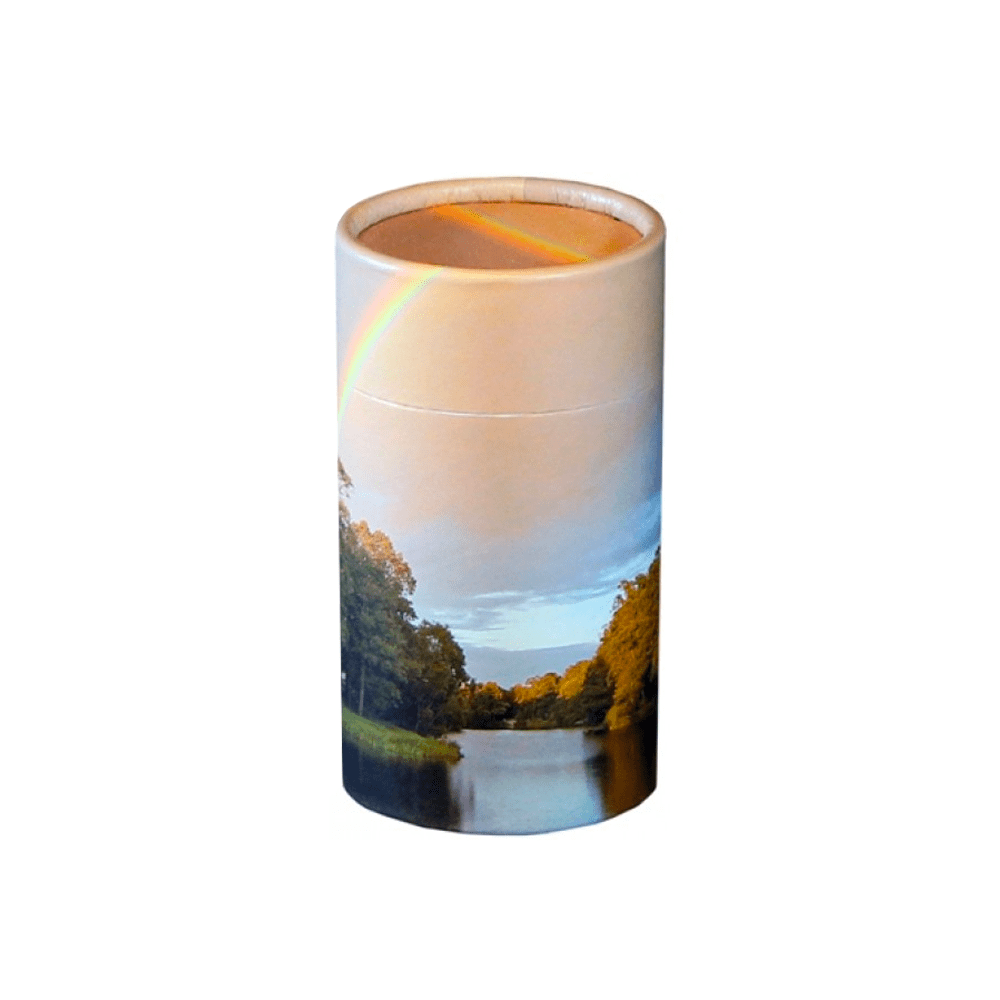 The Rainbow Pond Scatter Tube offers a dignified and eco-friendly way to scatter the ashes of a loved one. Designed to simplify the scattering process, these tubes are both durable and easy to use. Each tube features a removable lid and a perforated push-in tab, allowing for effortless preparation when it’s time to scatter the ashes.