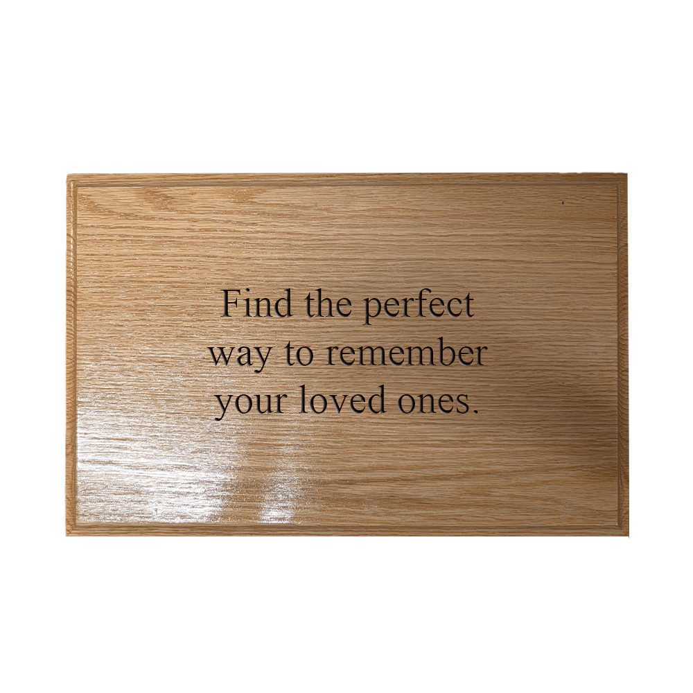 - Choose from various fonts and styles to create a custom engraved message on the oak surface. This engraving can accommodate up to 100 characters, providing a meaningful way to commemorate your loved ones. Each message is carefully formatted and sized to fit perfectly on the top of the casket, ensuring a polished and professional appearance.