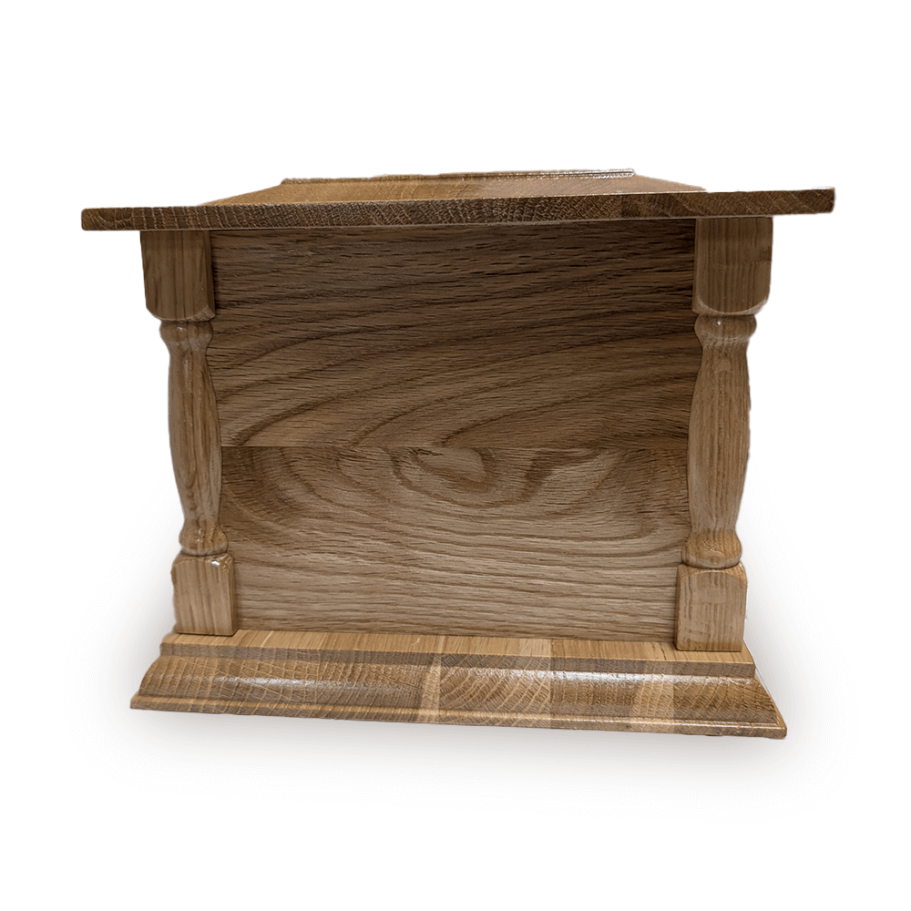 Key Features of the Solid Oak Single Pillared Style Adult Ashes Cremation Casket